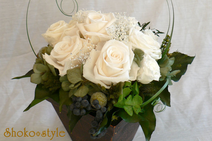 - 商品説明:シンプルなプリザーブドフラワー・アレンジメントの王道。